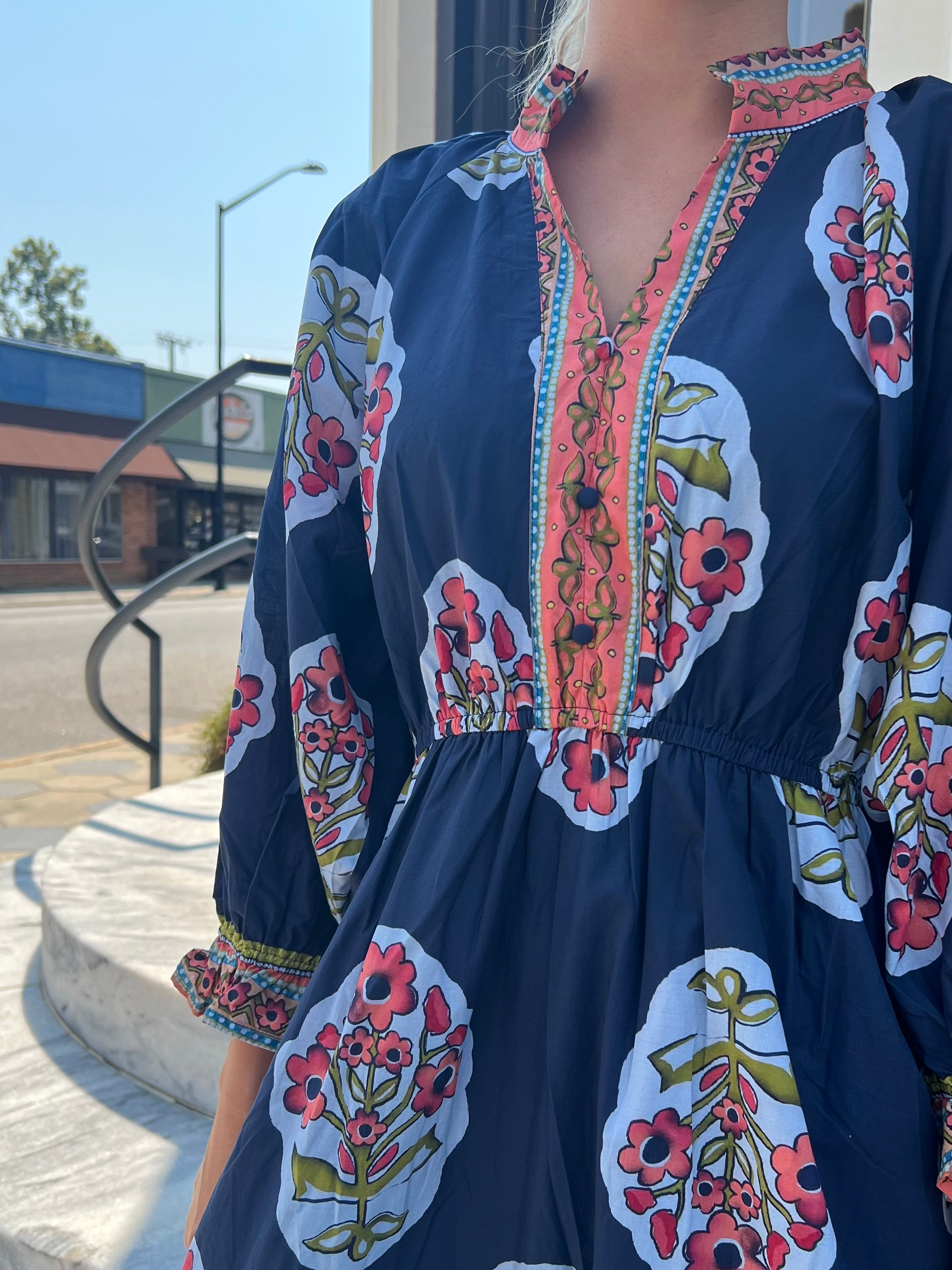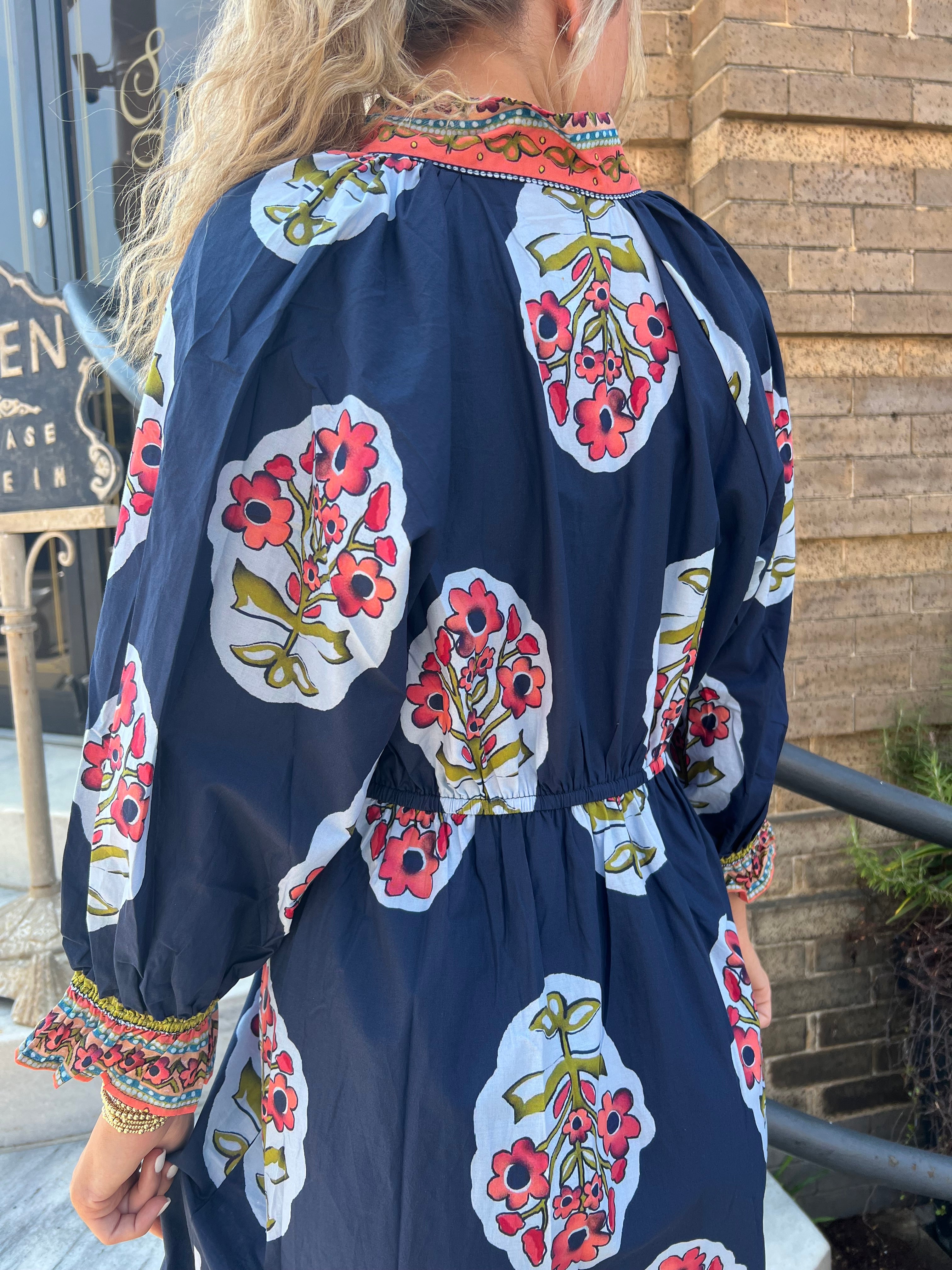 FLOWER PATCH MIDI DRESS - MIDNIGHT