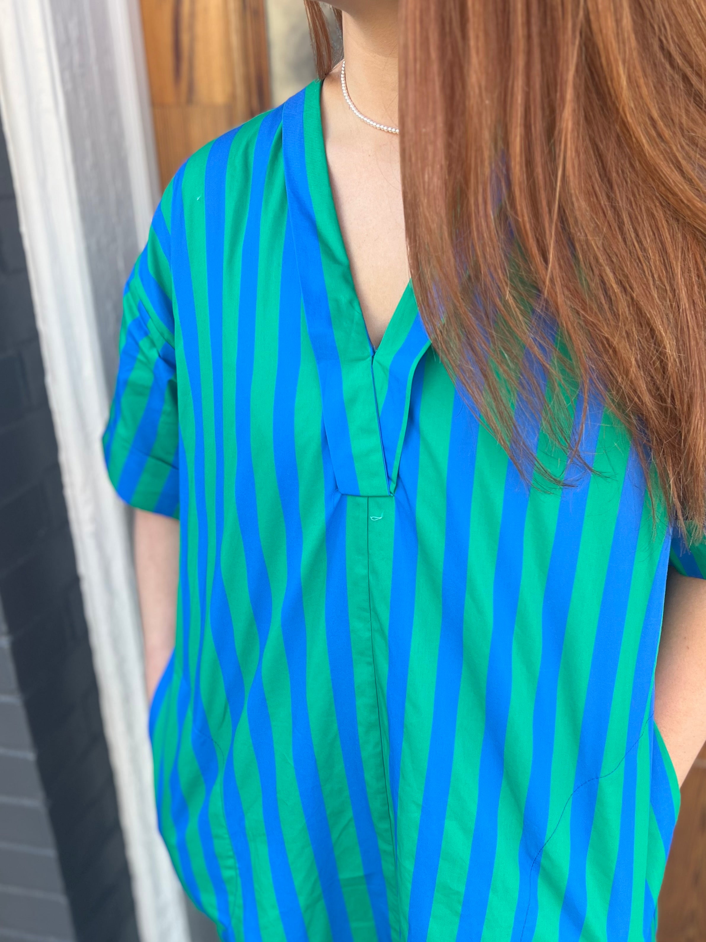 TWO-TONE STRIPE MIDI - GRN/BLU