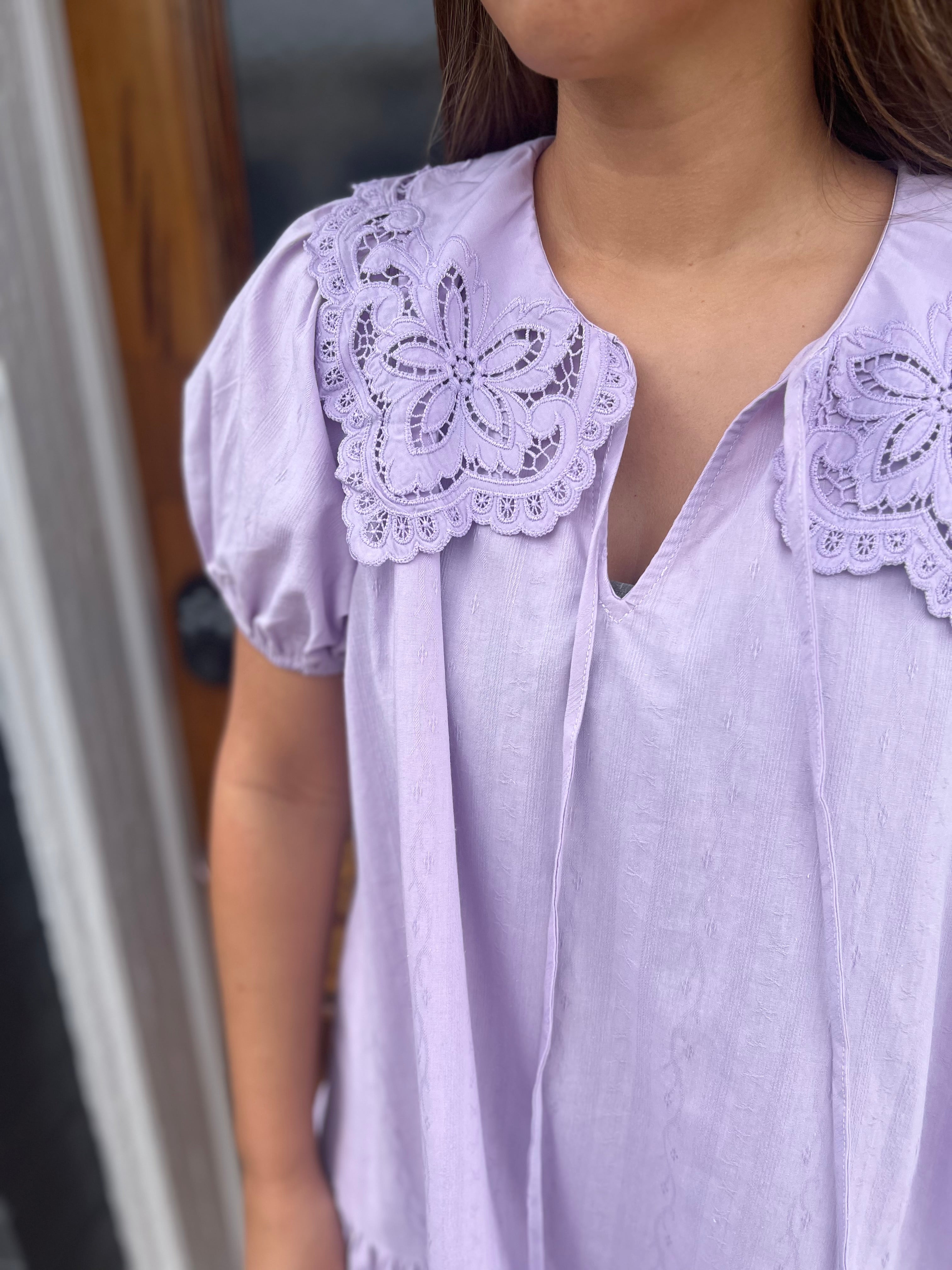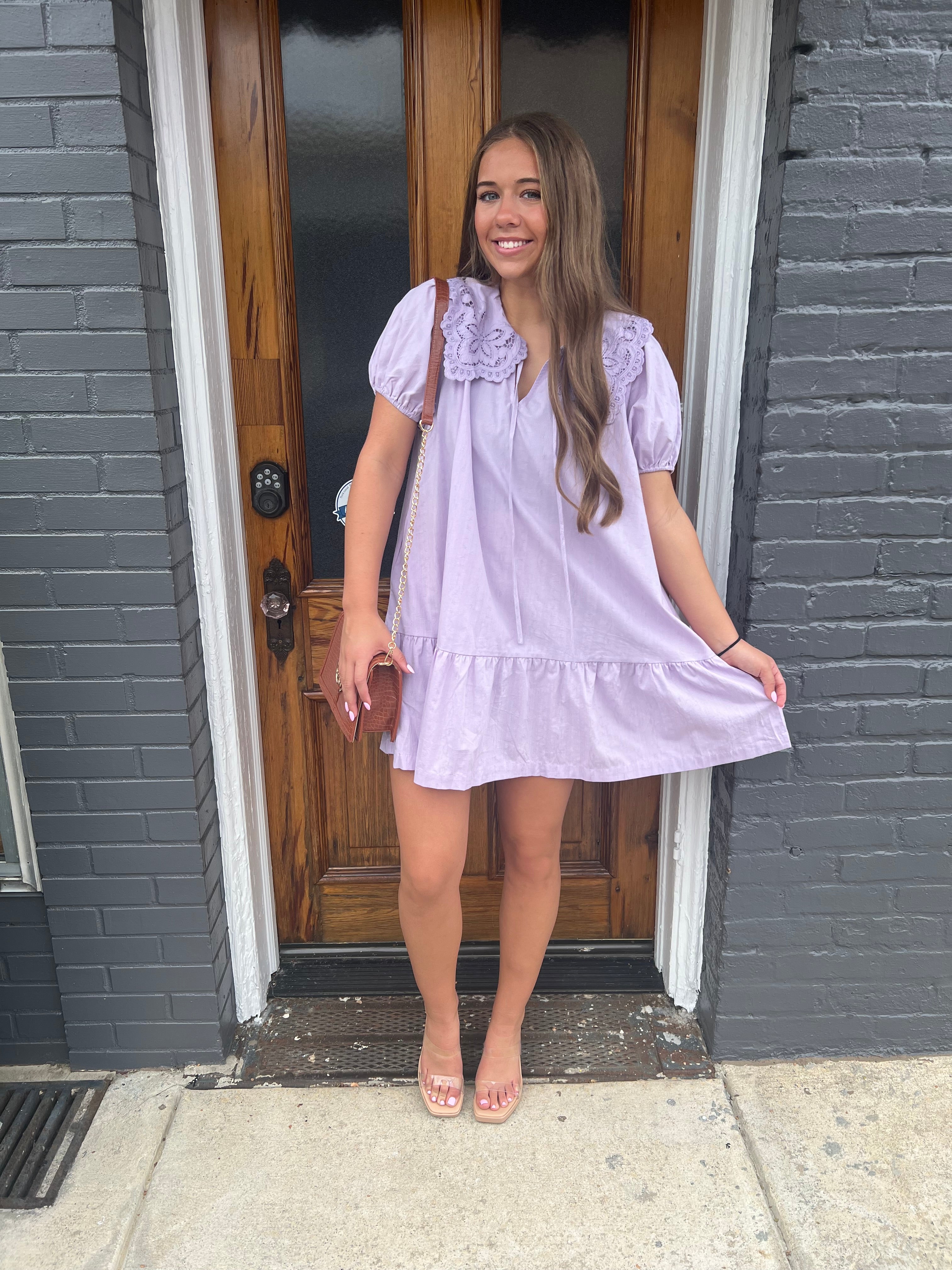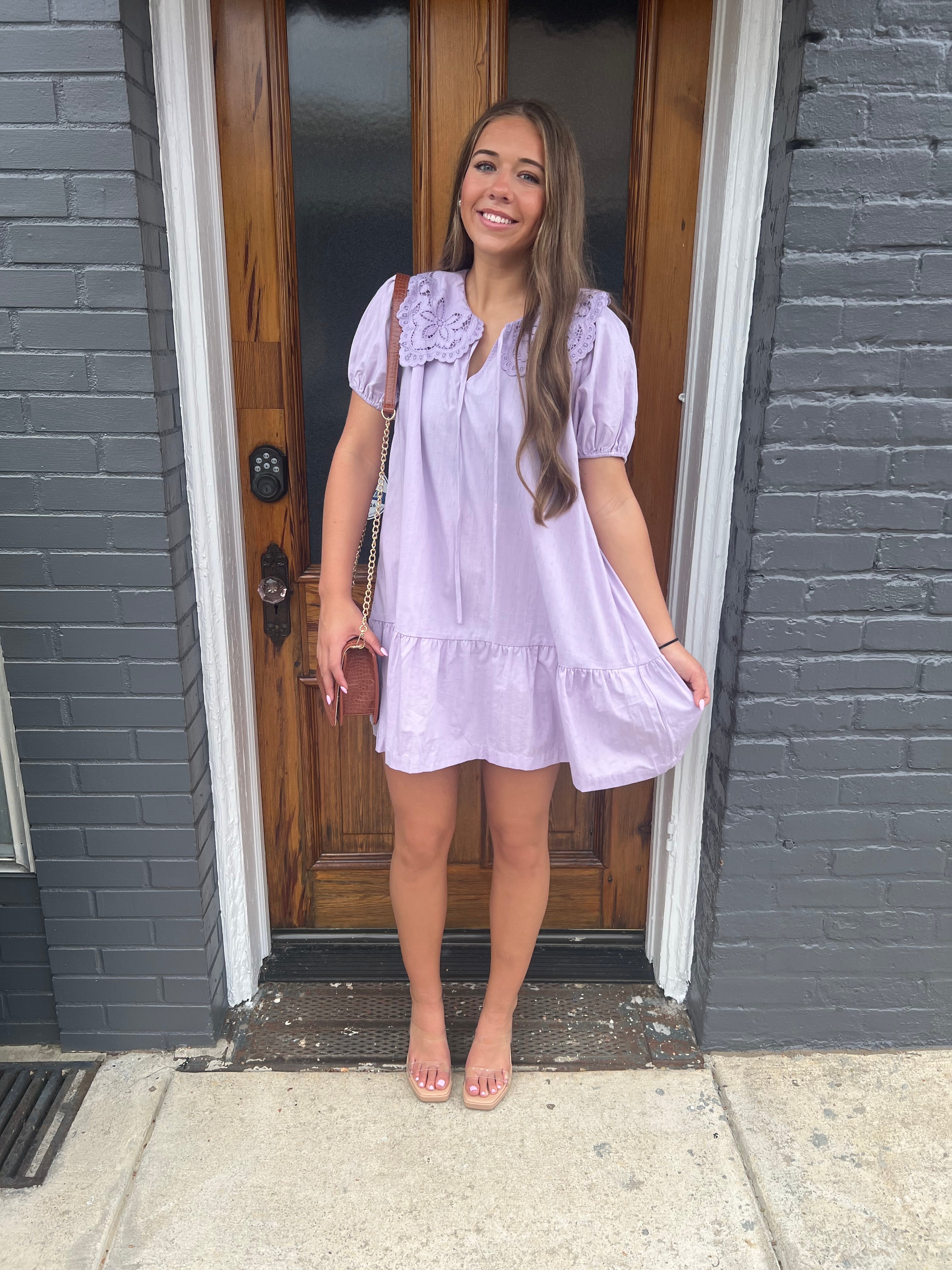 EMBROIDERED COLLAR DRESS - LAVENDER