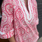 Embrace effortless elegance with this charming botanical print mini dress. The delicate 3/4 sleeves and contrast-trimmed V-neck create a flattering silhouette, while the structured collar adds a polished touch. Practical side pockets keep your essentials close, and the fully lined, non-sheer woven fabric ensures comfort and confidence all day long. Lightweight yet durable, this dress transitions seamlessly from casual outings to weekend adventures. A versatile wardrobe essential that combines style with everyday wearability.
