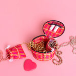 GEMS TO GO, NO TANGLES. Avoid tangles with this round compartmentalized jewelry case that is as cute as it is functional. There's a roomy main compartment, two drawstring pouches, and a lanyard in the lid (great for rings) that snaps shut. Pack it up, zip it shut, and go! A great gift too.