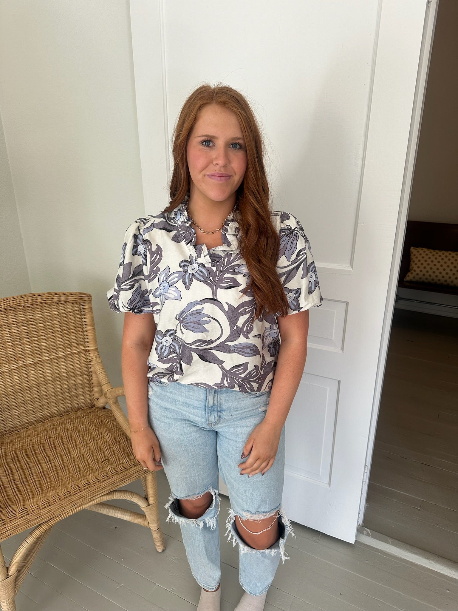 LUSH BLOSSOM PRINT TOP - GREY