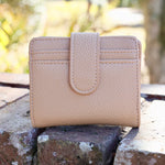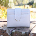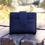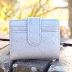Introducing the TATE WALLET, the perfect combination of functionality and style! Crafted with durable pebbled vegan leather and a magnetic closure, this wallet has two card holders on the front and back, and four interior card slots. A must-have for busy days!