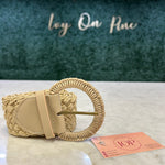 Introduce a touch of Western charm to your spring and summer wardrobe with our Natural Woven Braided Belt. Made from raffia, this versatile accessory adds a pop of texture to any outfit. Complete your sun-kissed look with its circular buckle, perfect for accenting dresses or denim.