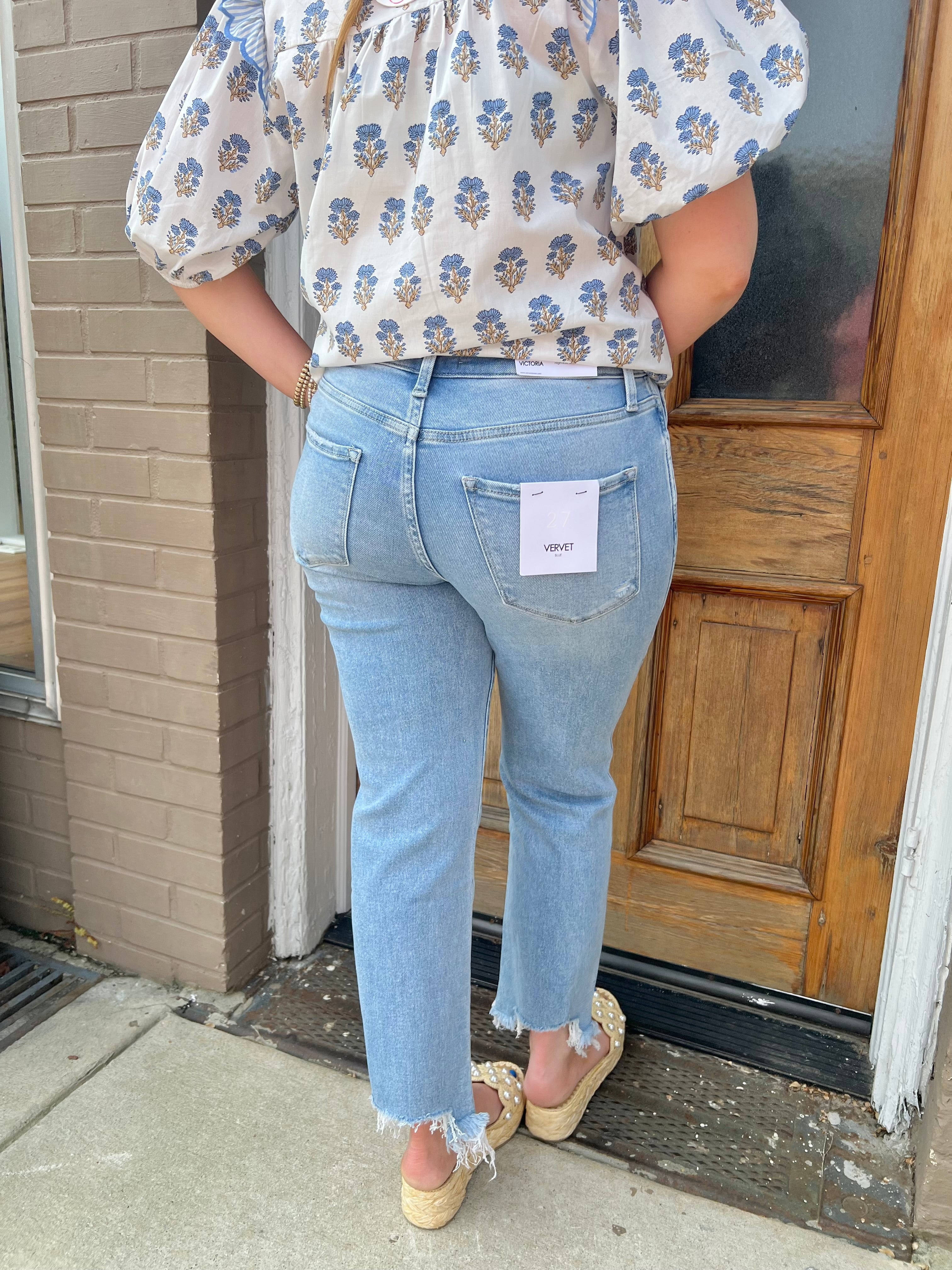 Unleash your inner fashionista with FONDLY JEANS by Vervet. These high-rise, regular straight jeans are crafted from comfortable stretch denim and feature a distressed detail for an edgy look. The cropped length adds a touch of flair to your outfit. Upgrade your style game with FONDLY JEANS.