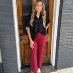 Discover the perfect pair of jeans with RISEN WINE JEANS! Featuring tummy control for a flattering fit, a wide leg design for comfort, and a high rise to accentuate your shape. These crop pants are a must-have for any fashion-forward wardrobe. Feel confident and stylish with RISEN WINE JEANS!