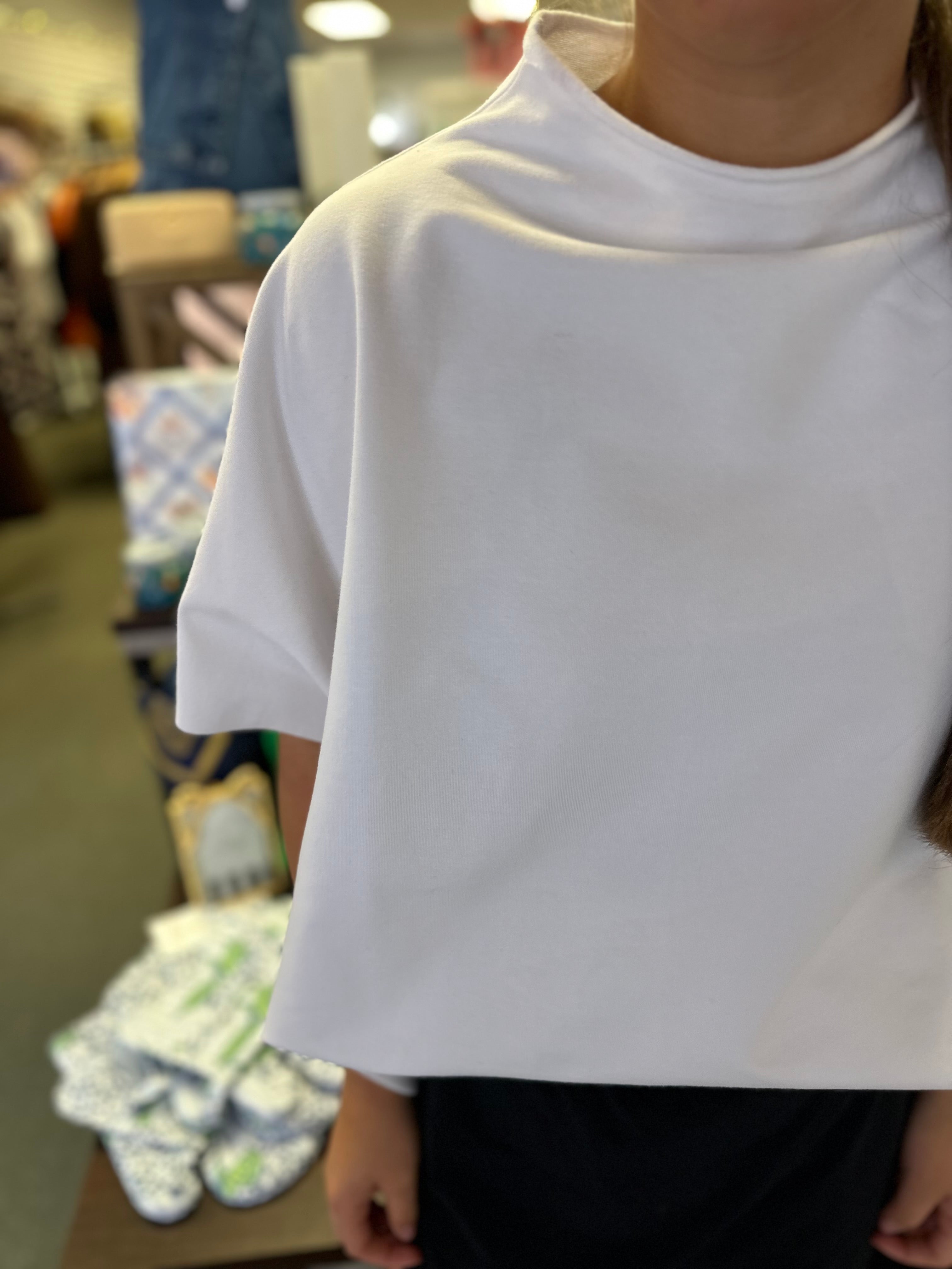 The Cullen Top by MudPie offers effortless style with its soft cotton jersey fabric and chic raw edge details at the mock neck, sleeves, and hem. Designed to fit most comfortably with a relaxed silhouette, this versatile short sleeve top measures approximately 28" from shoulder to hem, making it an easy go-to for any casual occasion. Elevate your everyday wardrobe with a piece that combines comfort and subtle edge.