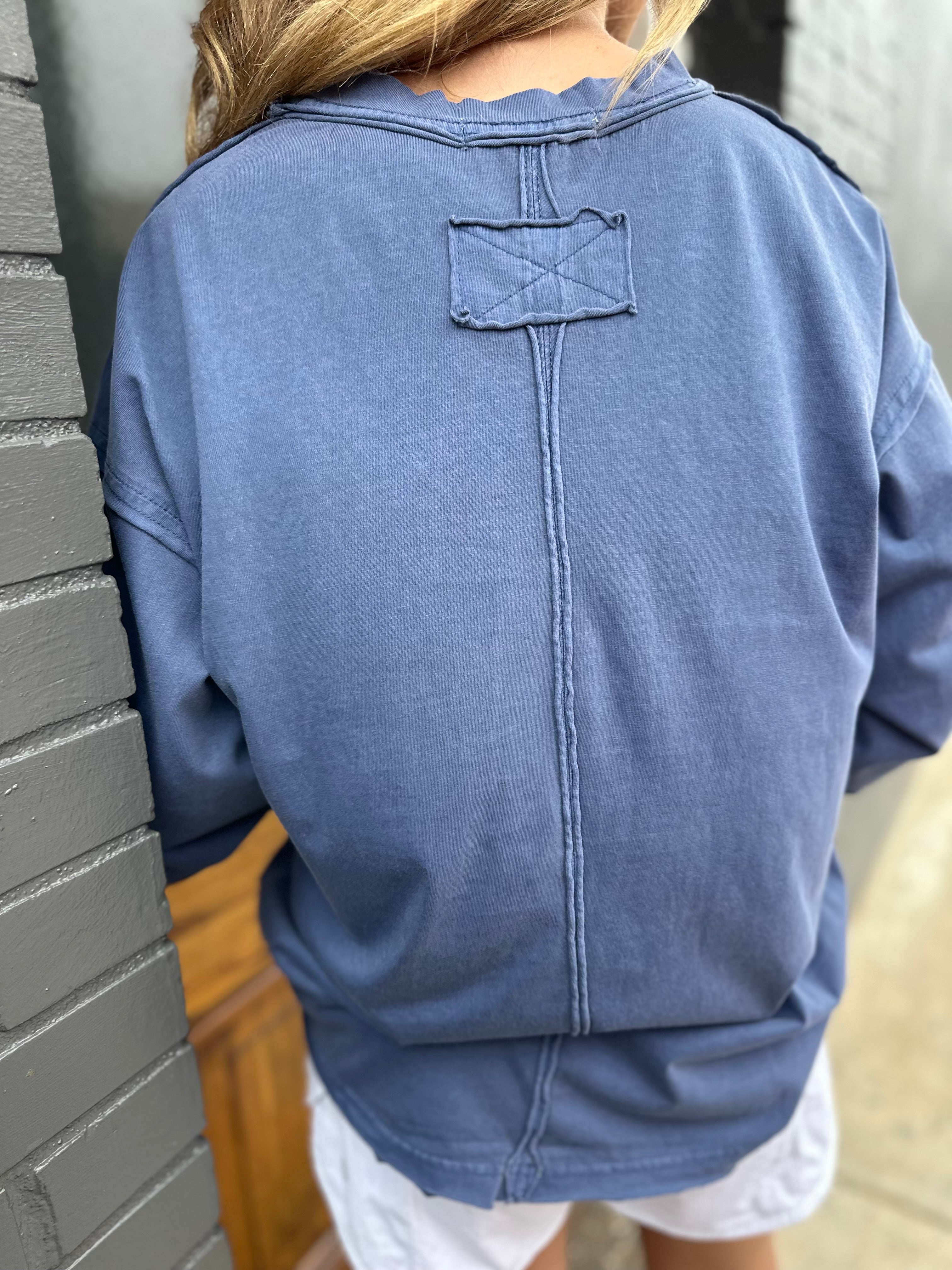 PIGMENT WASHED LS TOP - NAVY