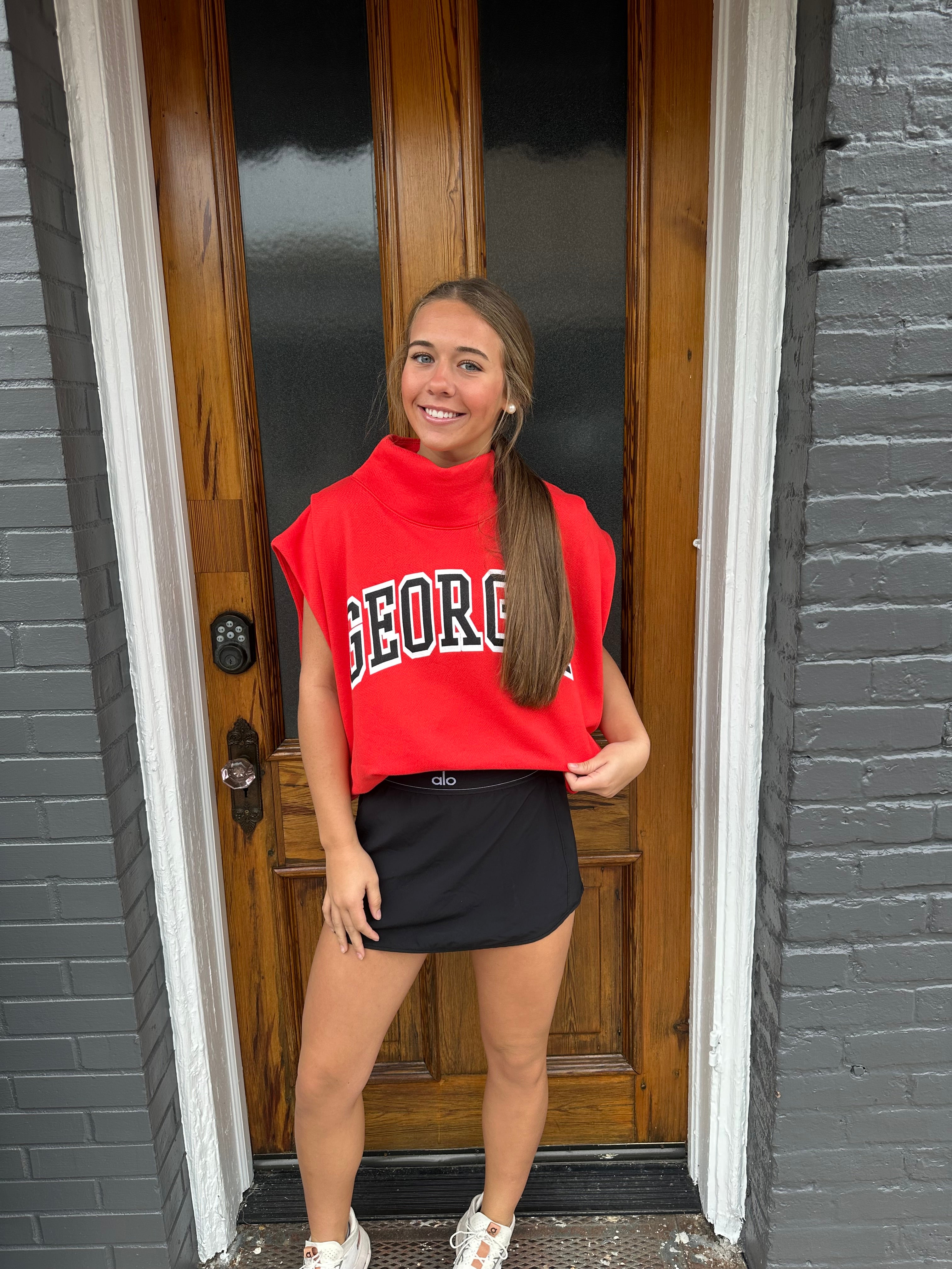 'GEORGIA' PRINT OVERSIZED MUSCLE TOP - RED