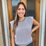 Elevate your style with the ASHER SWEATER TOP. Designed with a versatile sleeveless cut and minimal shoulder pads, this knit top effortlessly maintains its shape. Perfect for both casual and dressy occasions, the ASHER SWEATER TOP is a must-have addition to your wardrobe.