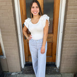 This soft jersey rib bodysuit features a stretchy fabric for a comfortable fit. The poplin cotton shoulders add a touch of structure, while the puff ruffle sleeves provide a feminine touch. With the HAYDEN BODYSUIT, you can feel confident and stylish all day long.