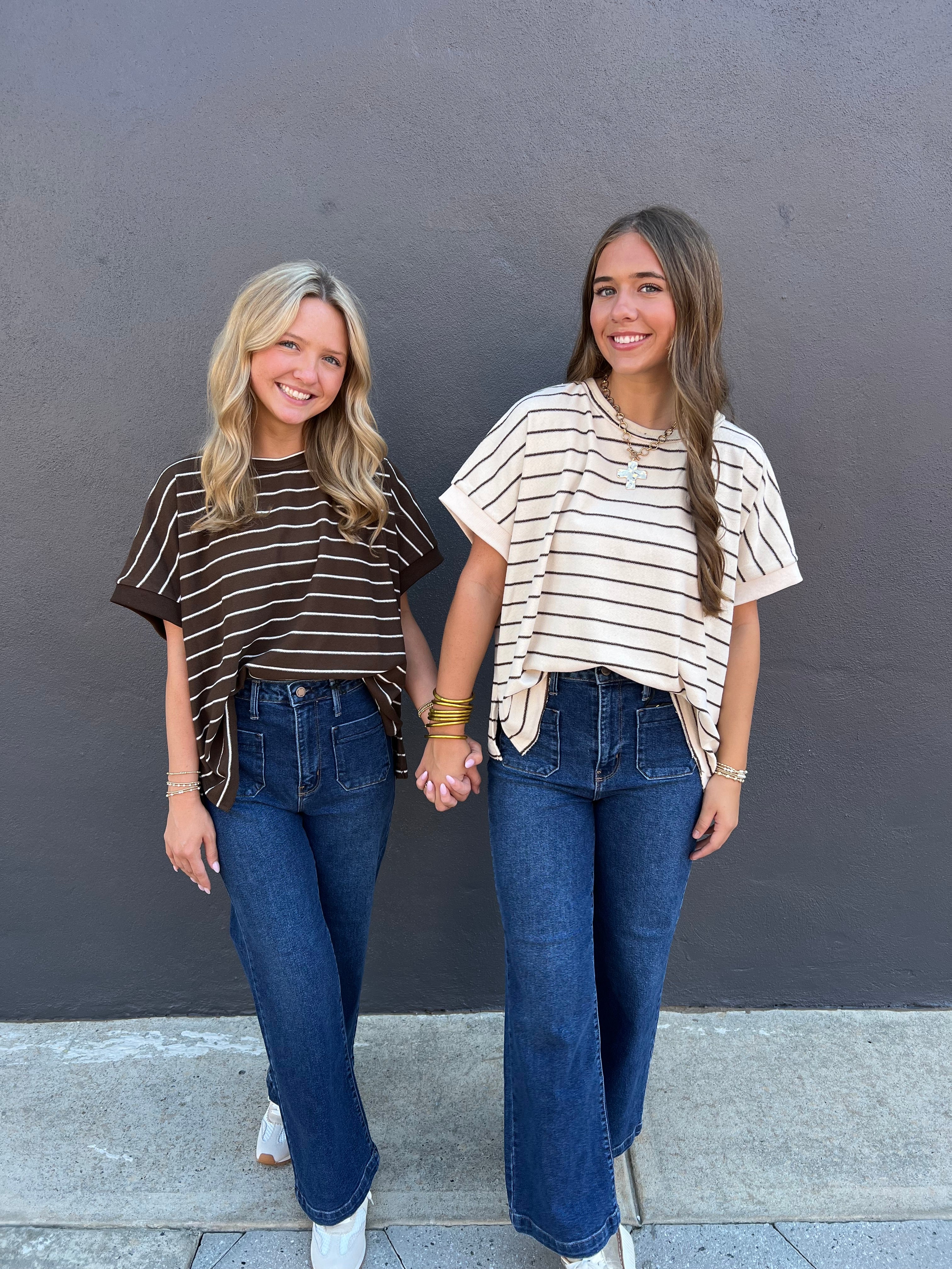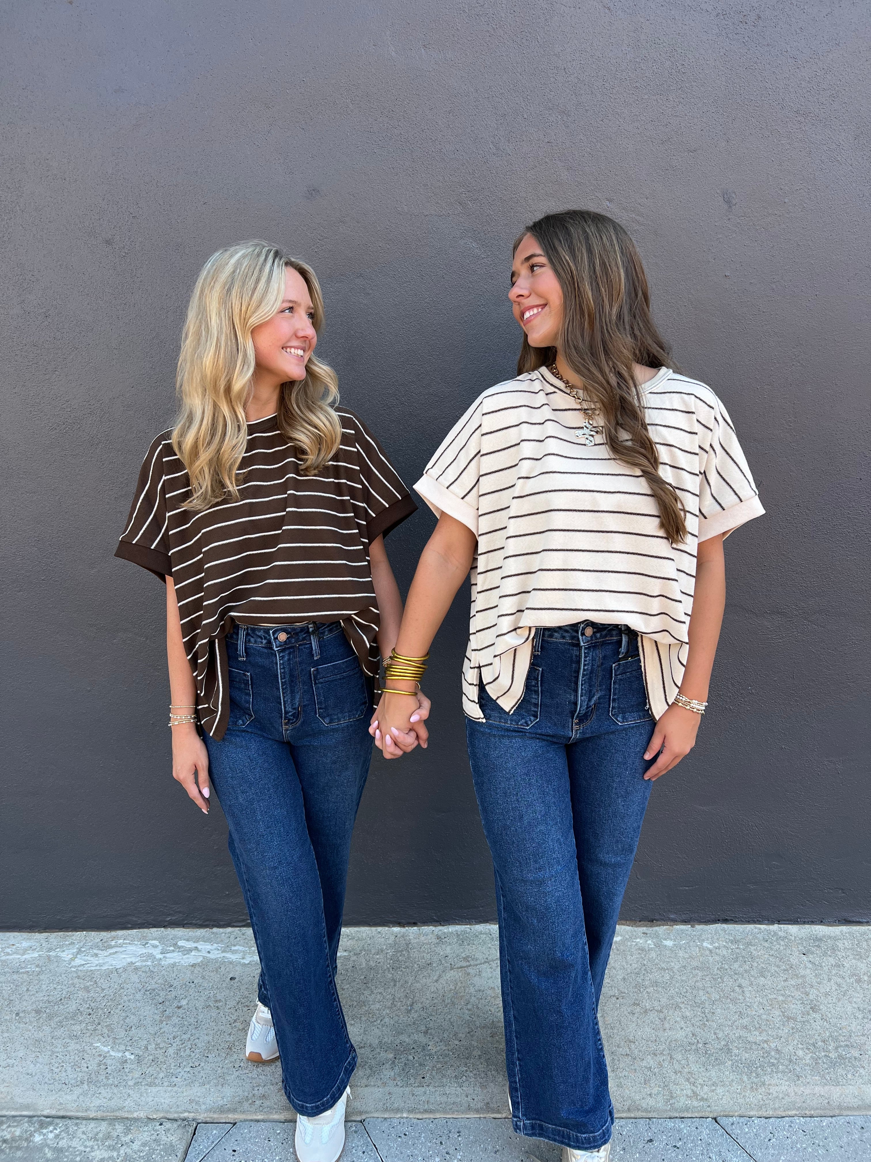 Experience comfort and style with the Line & Dandy Top in Oatmeal. Crafted from soft French terry fabric, this oversized top features a relaxed round neck for effortless wear. Its cozy texture and roomy fit make it perfect for lounging or casual outings, combining ease and elegance in one versatile piece.
