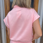 Elevate your casual wardrobe with this 1/4 zip scuba top. Featuring convenient zip-up front detailing and comfortable short sleeves, this sweatshirt wraps you in soft, cozy scuba fabric that feels luxurious against your skin. Perfect for layering or wearing alone, this versatile piece will quickly become your go-to for effortless style and comfort.