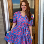 Introducing the AUDRA V-NECK DRESS by MUDPIE. Made from quality cotton cambric, this dress features a flattering V-neck and removable waist tie. With a flounce hem and short elastic sleeves, it's perfect for any occasion. Measures 35 1/2" in length for a stylish fit. Get yours today and elevate your wardrobe!