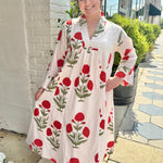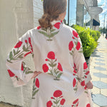 Introducing our versatile and stunning BERRY ROSE' CAFTAN DRESS! Made with 100% cotton and lined for comfort, it can be worn as a dress or swim cover. Handcrafted using block printing by skilled artisans in India, each dress is unique with variations in ink colors. Machine washable, air dry for lasting quality. A must-have for any fashion forward individual!