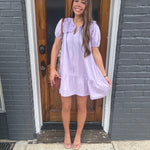 This lavender embroidered collar dress offers a charming A-line silhouette complemented by delicate embroidery and stylish puff sleeves. The front drawstring adds a tailored touch, enhancing the fit while keeping the look effortlessly elegant. Perfect for warm days, the unlined design ensures comfort without compromising on style. Elevate your wardrobe with this feminine and versatile mini dress that captures both grace and modern flair.
