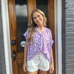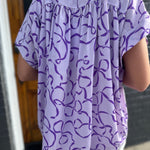 The Emerson Lilac Bows Top by Adrienne features a charming V neckline and shirred sleeve bands for a stylish touch. Its slightly oversized fit ensures comfort and ease, making it an ideal choice for back-to-school days or game day gatherings. Embrace effortless style and cozy wear with this versatile top.
