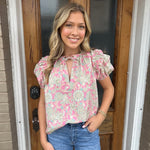 Experience the beauty of nature with our Hidden Garden Top! Featuring short puff sleeves, double ruffle shoulder detail, and a V-neck with tie, this top exudes feminine charm. The delicate floral design on a blush background adds a touch of romance to your wardrobe. Embrace your inner flower child!