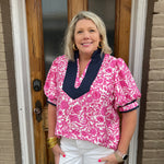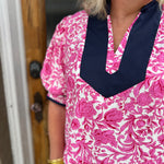 Experience effortless style with our IT FITS THE SCENE pullover top. The floral print and voluminous puff sleeves add a touch of femininity, while the caftan-inspired high neck band and split V-neck elevate the look. Made with lightweight and non-sheer fabric, this top is perfect for any occasion.