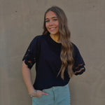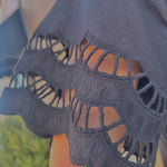 Elevate your style with the Levy Eyelet T-Shirt by Mudpie! Featuring soft cotton jersey and delicate cotton voile eyelet sleeves, this t-shirt is both comfortable and chic. Perfect for any occasion, it measures 25" from shoulder to hem on a size small. Upgrade your wardrobe with this must-have piece!