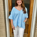 The LUNA TOP is a must-have for fashion-forward individuals. Its SKY BLUE color will catch eyes and its oversized fit will provide comfort and style. The solid textured fabric adds an extra touch of sophistication while the flattering V-line cut brings a unique twist to this tunic top. Elevate your wardrobe with the LUNA TOP!