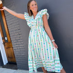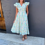Elevate your style with the Ruffle Sleeve Maxi in Off White Mix, featuring a flattering V-neckline front and back that enhances your silhouette. The wide ruffle-trimmed sleeves and bodice add a touch of feminine elegance, while the lightweight woven fabric ensures comfort and breathability all day long. Perfect for any occasion, this maxi dress combines effortless charm with a graceful flow that moves with you. Make a statement in this beautifully designed dress that blends style and comfort seamlessly.