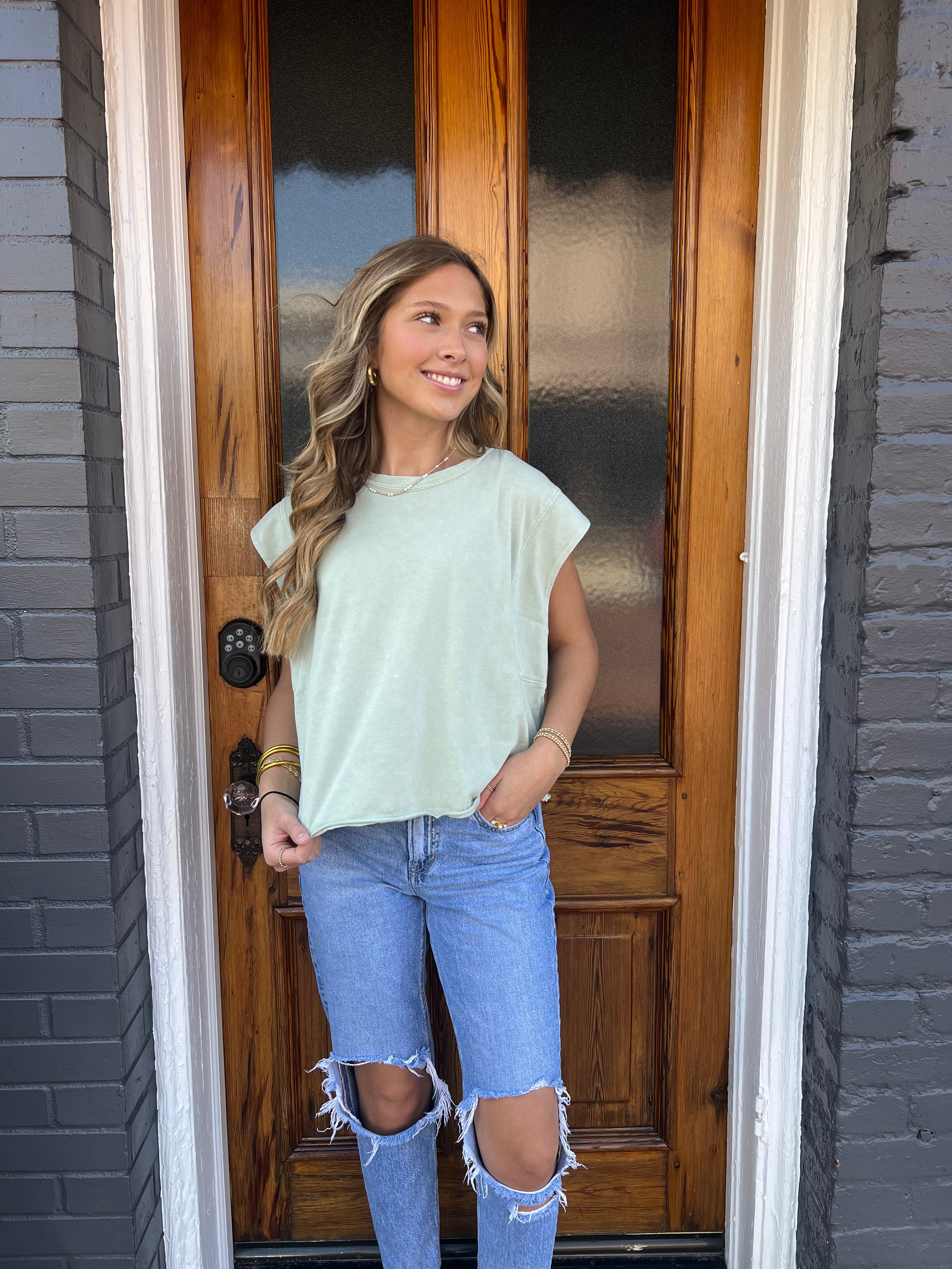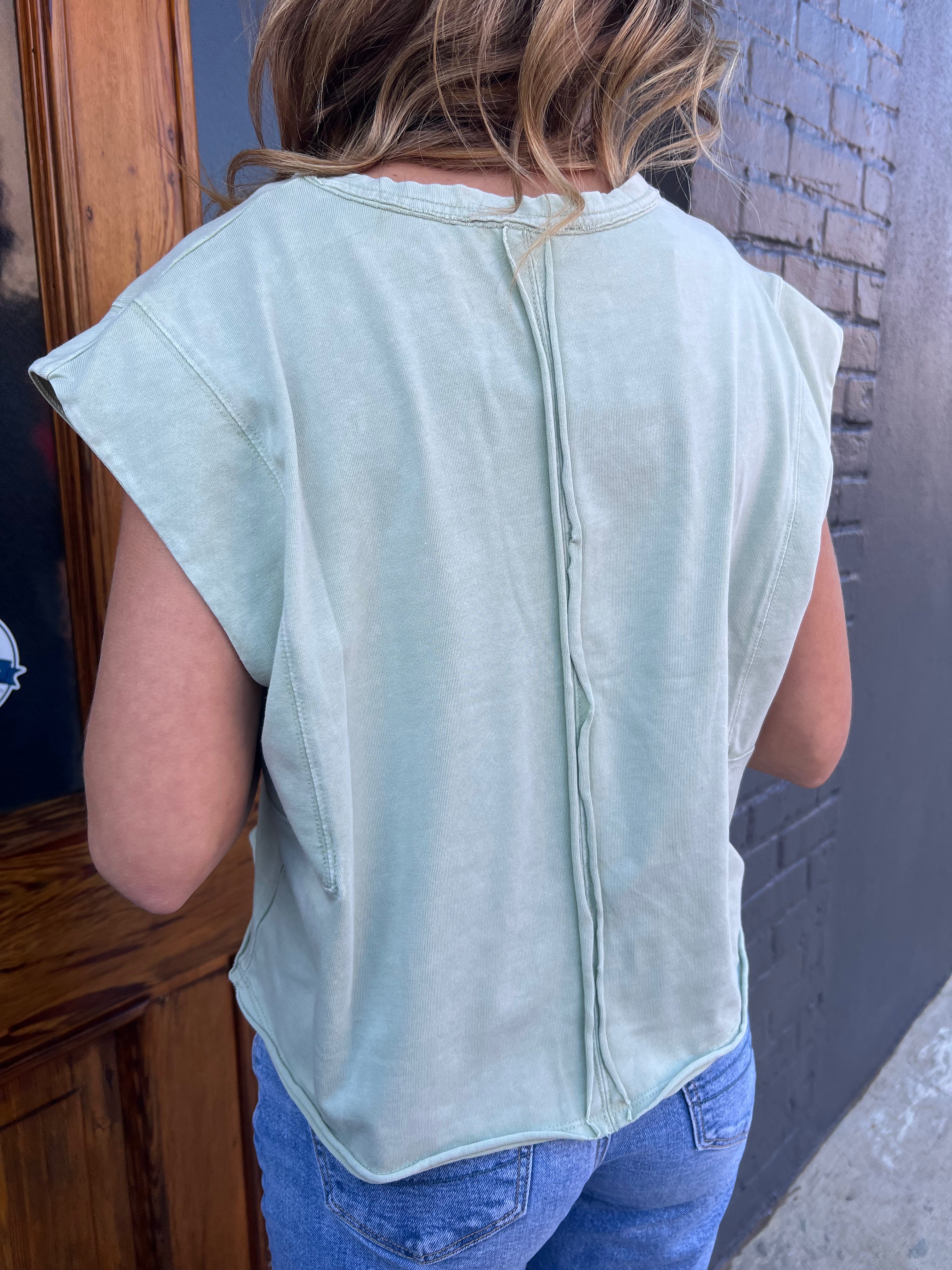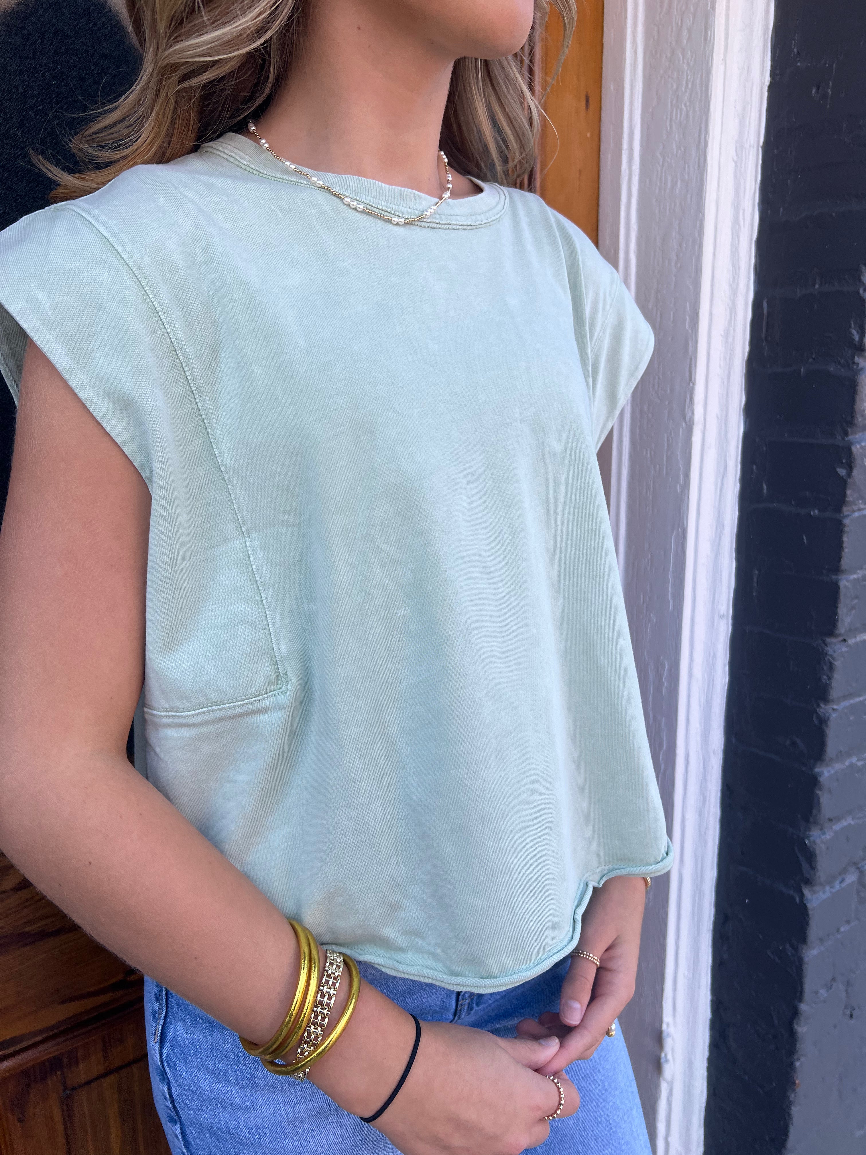 Experience effortless style and comfort with this sleeveless cropped tank in Mint Latte. Crafted from mineral-washed cotton, it offers a soft, worn-in feel that’s perfect for everyday wear. Its relaxed, oversized fit and raw seaming details add a vintage-inspired edge, making it ideal for layering or wearing on its own. Elevate your casual wardrobe with this versatile, breathable tank designed to keep you comfortable and stylish all day long.