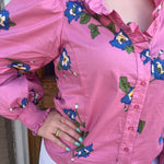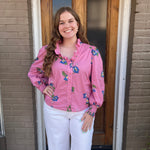 Introducing THE CHRISTINE BLOUSE! Embrace the season with its beautiful floral print and feminine ruffled neck. The button front closure adds a touch of sophistication, while the long smocked sleeves create a fitted silhouette. Elevate your wardrobe with this must-have piece!