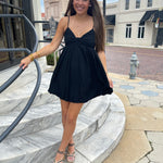 The perfect little black dress! The Cindy Cami Dress features a bow front, bubble hem, and adjustable tie at the shoulder for a flattering fit. Complete with pockets, a lined interior, and a back zipper. You'll love how chic and effortless you look in this dress!