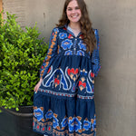 Experience elegance and femininity with the Kaylin Dress. Adorned with a beautiful floral print, this dress features long sleeves and a tiered ruffle design for a romantic touch. With a button-down front and maxi length, this dress is perfect for any special occasion.