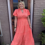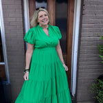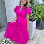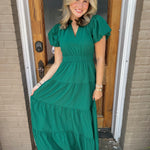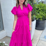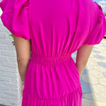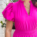 This stunning Melinda Dress is available in sizes small through 2X and comes in several colors to choose from. The solid split v-neck design, ruffled round neck and bubble short sleeves provide a feminine touch, while the elastic waistband and lightweight material offer comfort and versatility. Perfect for any occasion!