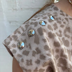 Elevate your style with THE MUSCLED LEOPARD TOP. This fierce and trendy leopard print muscle top features studded accents on the shoulders for a bold and edgy look. Made with a lightweight and non-sheer knit fabric, this top is perfect for any occasion. Unleash your wild side and make a statement with THE MUSCLED LEOPARD.