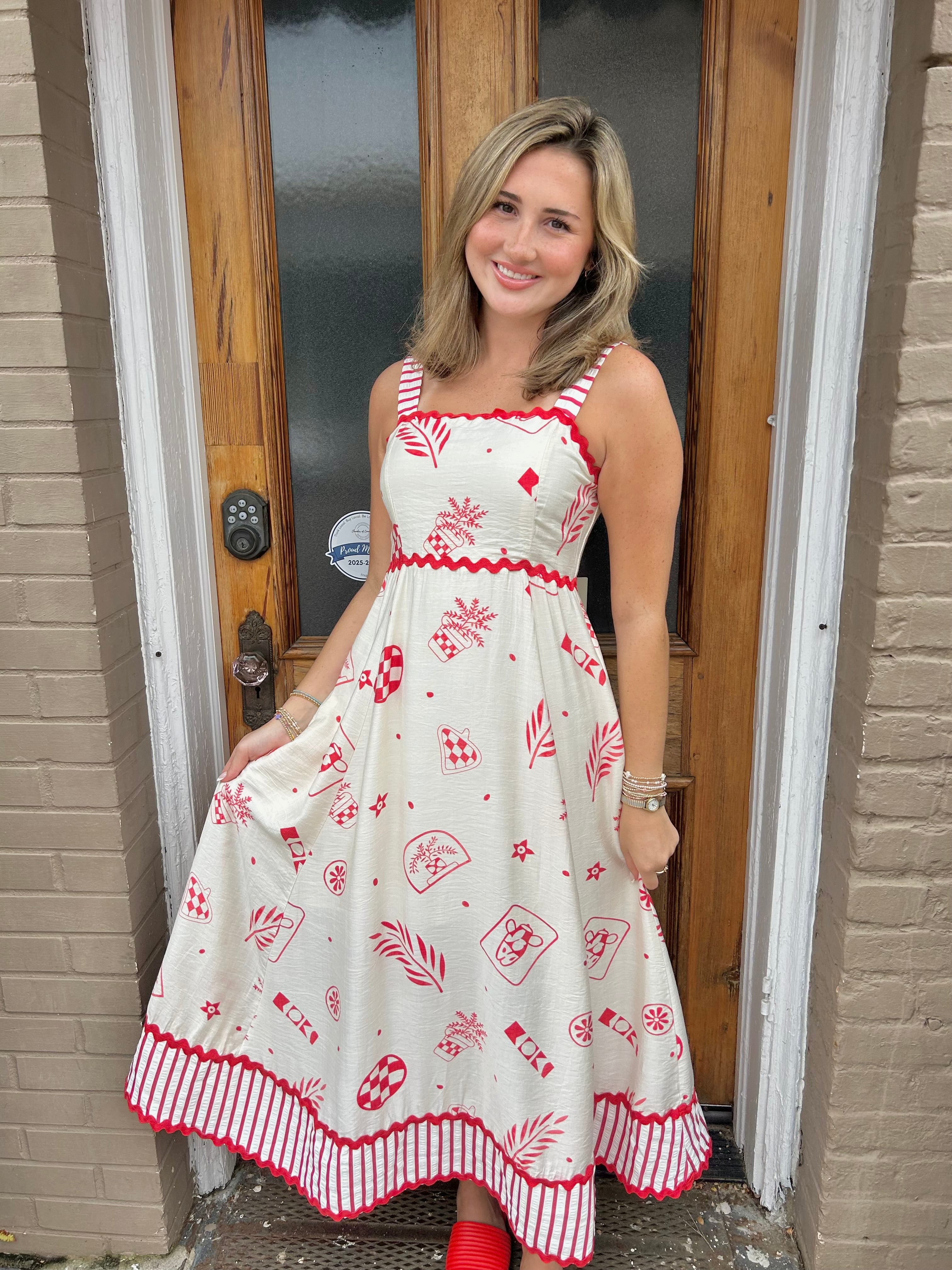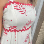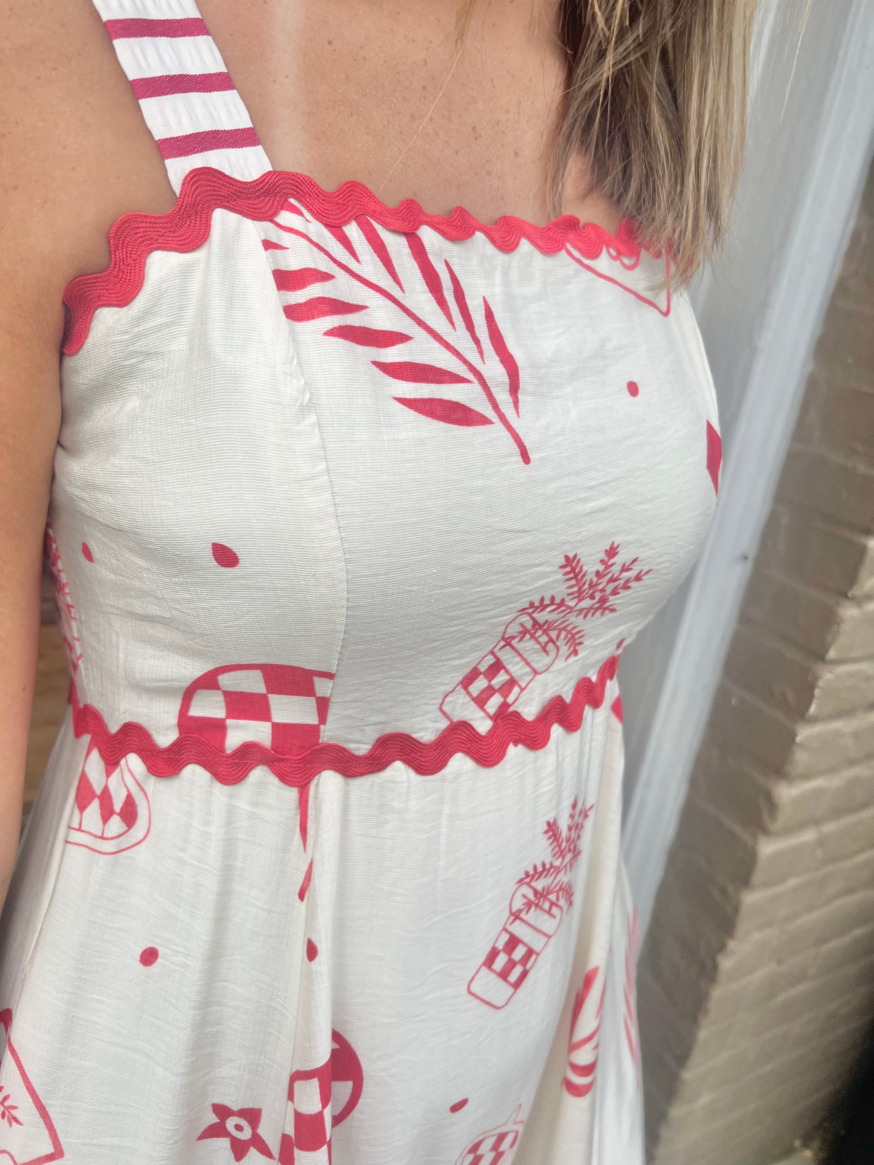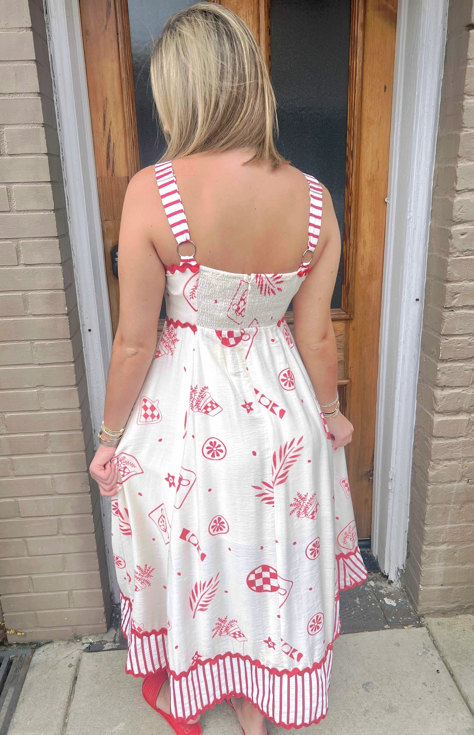 Upgrade your vacation wardrobe with our stunning The Vacation Midi Dress! This vibrant and versatile dress features multi-print patterns, adjustable straps, and a unique ricrac accented hem. The zipper smocking closure at the back allows for a perfect fit, while the pockets at the sides add convenience. Stay comfortable all day long with the lightweight, non-sheer, and fully lined woven fabric. Elevate your style with this must-have vacation essential!