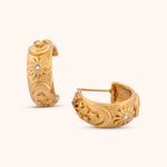 Introducing the ASTRAL HOOPS, a stunning addition to your jewelry collection. These gold hoops feature a unique solar design, perfect for any occasion. Pair them with the coordinating cuff bracelet for a complete and sophisticated look. Elevate your style with ASTRAL HOOPS.