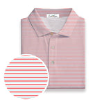 Elevate your golf game with our CORAL/LIGHT BLUE/WHITE STRIPE POLO BY AUTILOVE. Made from a feather light weight performance fabric, this polo offers extreme comfort and a perfect fit. Crafted from the world's most renowned factories, it's designed to keep you comfortable both on and off the course. 92% polyester and 8% spandex for easy care and maximum comfort.