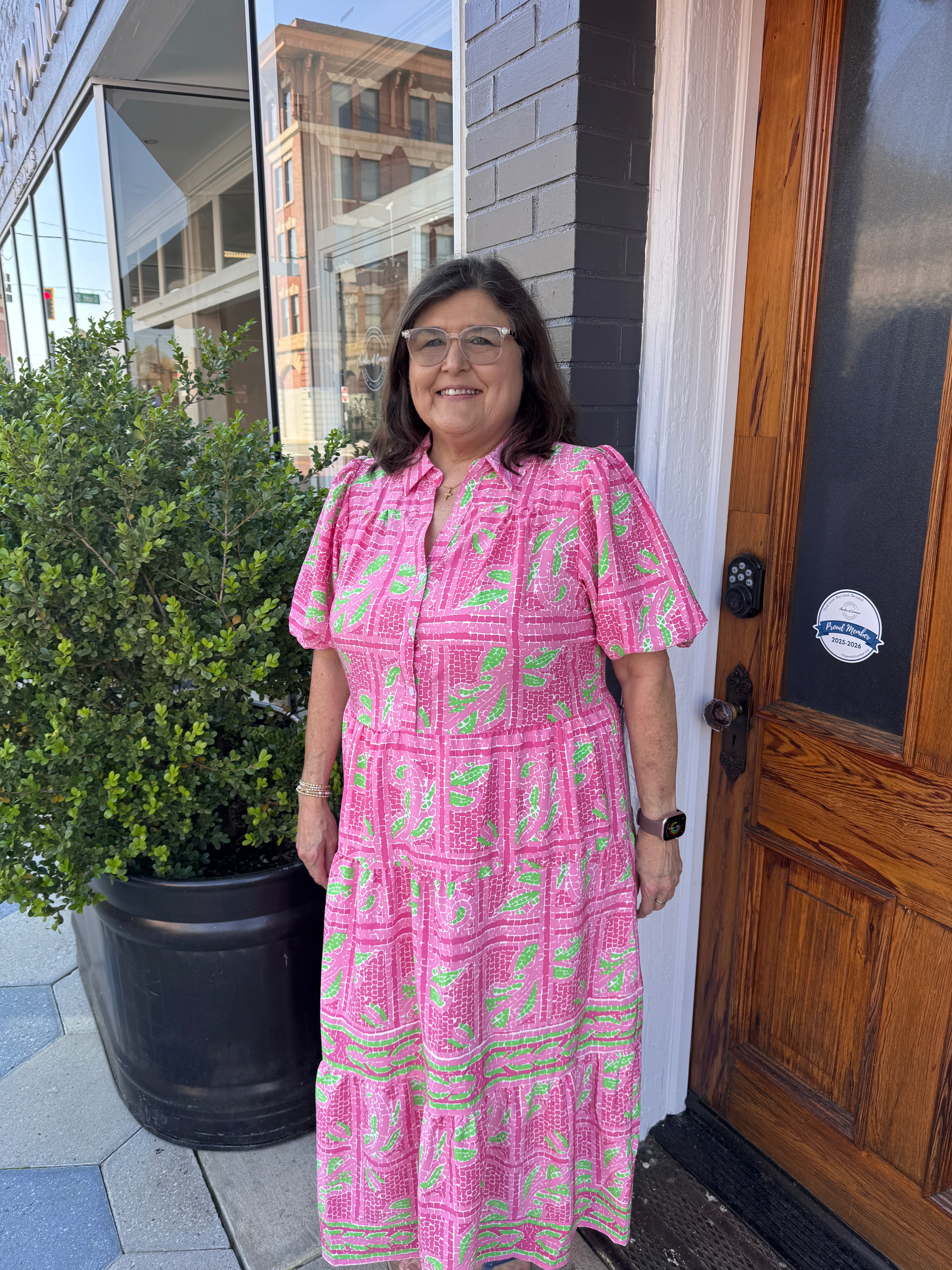The Eloise Dress combines effortless style with thoughtful details. Featuring charming puff sleeves with elastic finish and a flattering tiered midi silhouette, this versatile piece transitions seamlessly from casual to dressed-up occasions. Practical side pockets add everyday functionality, while the 97% polyester and 3% spandex blend ensures comfortable wear. Perfect for anyone seeking a dress that balances relaxed elegance with wearability.