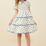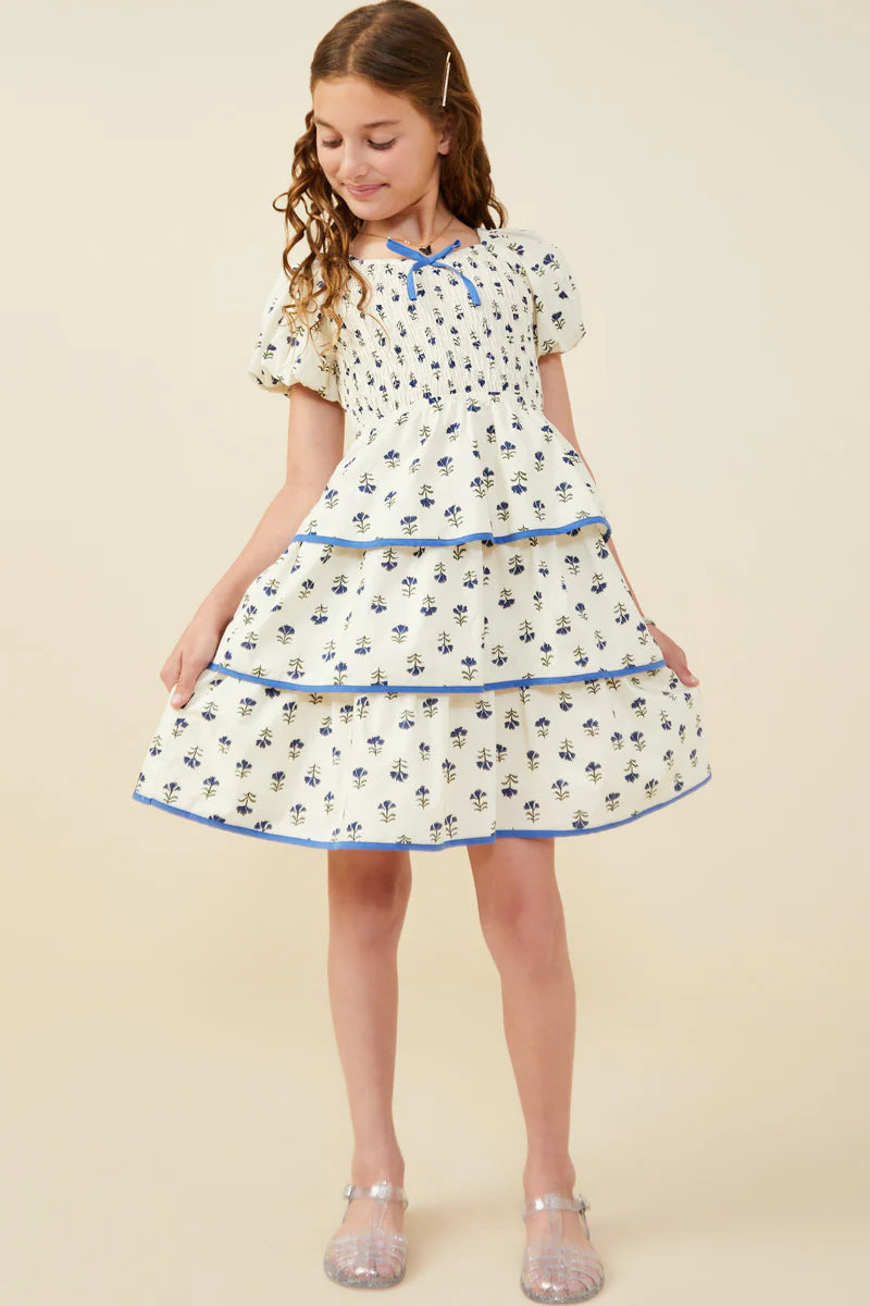 GIRLS FLORAL TIERED SMOCKED DRESS - CREAM