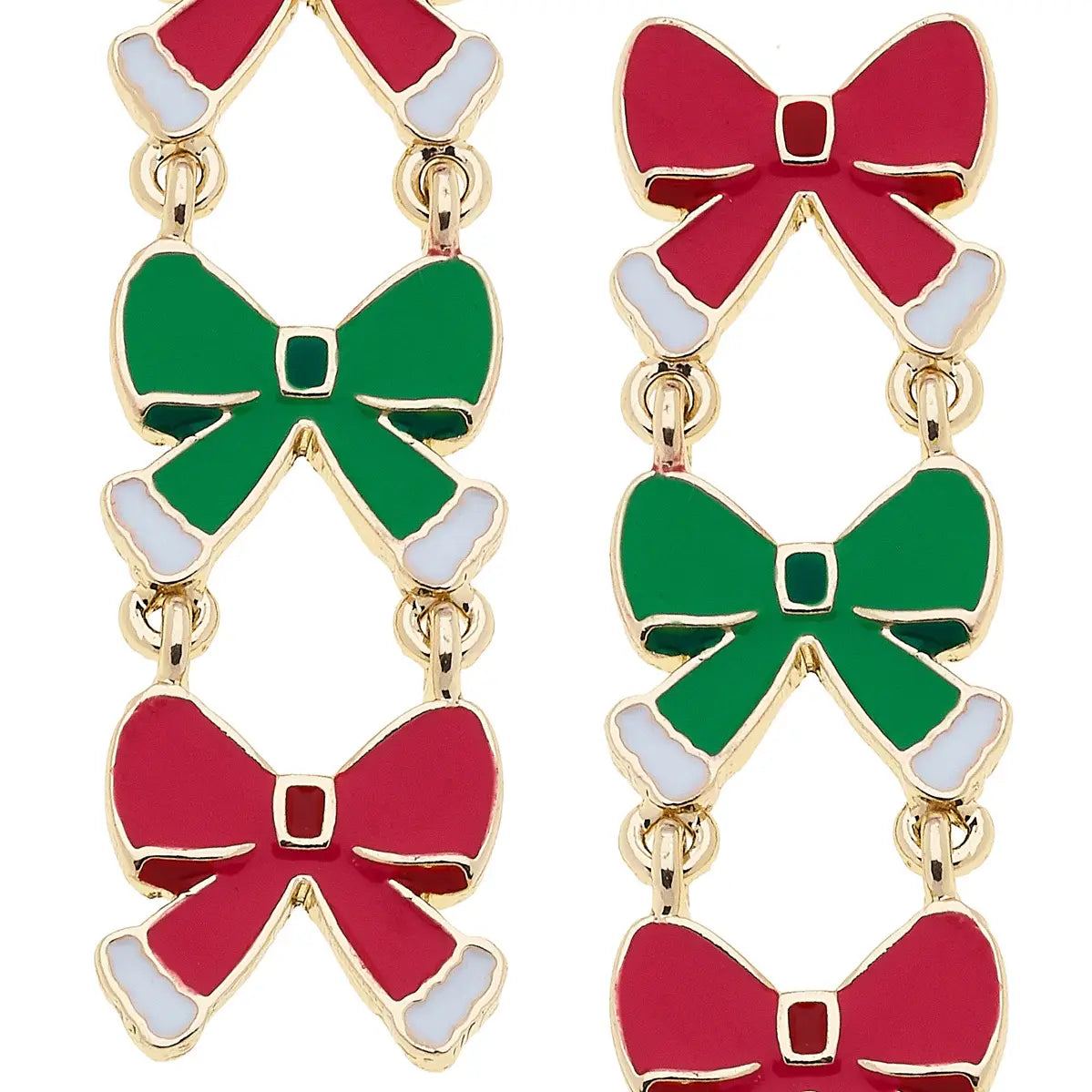 LINKED CHRISTMAS BOW EARRINGS IN RED/GREEN/WHITE