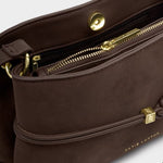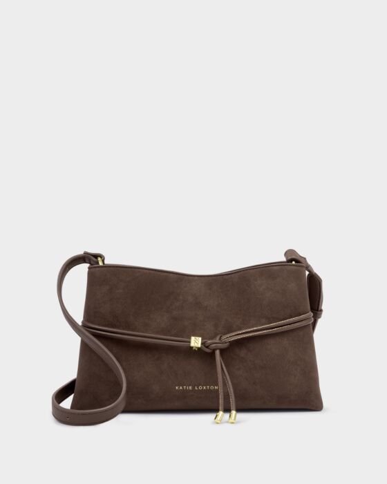 The Lori Crossbody Bag in Bitter Chocolate is a timeless everyday accessory made from soft-to-touch suedette. Featuring a knot-tie belt detail with branded beads and an adjustable strap, it transitions effortlessly between a shoulder bag, top handle, and crossbody for multiple styling options.