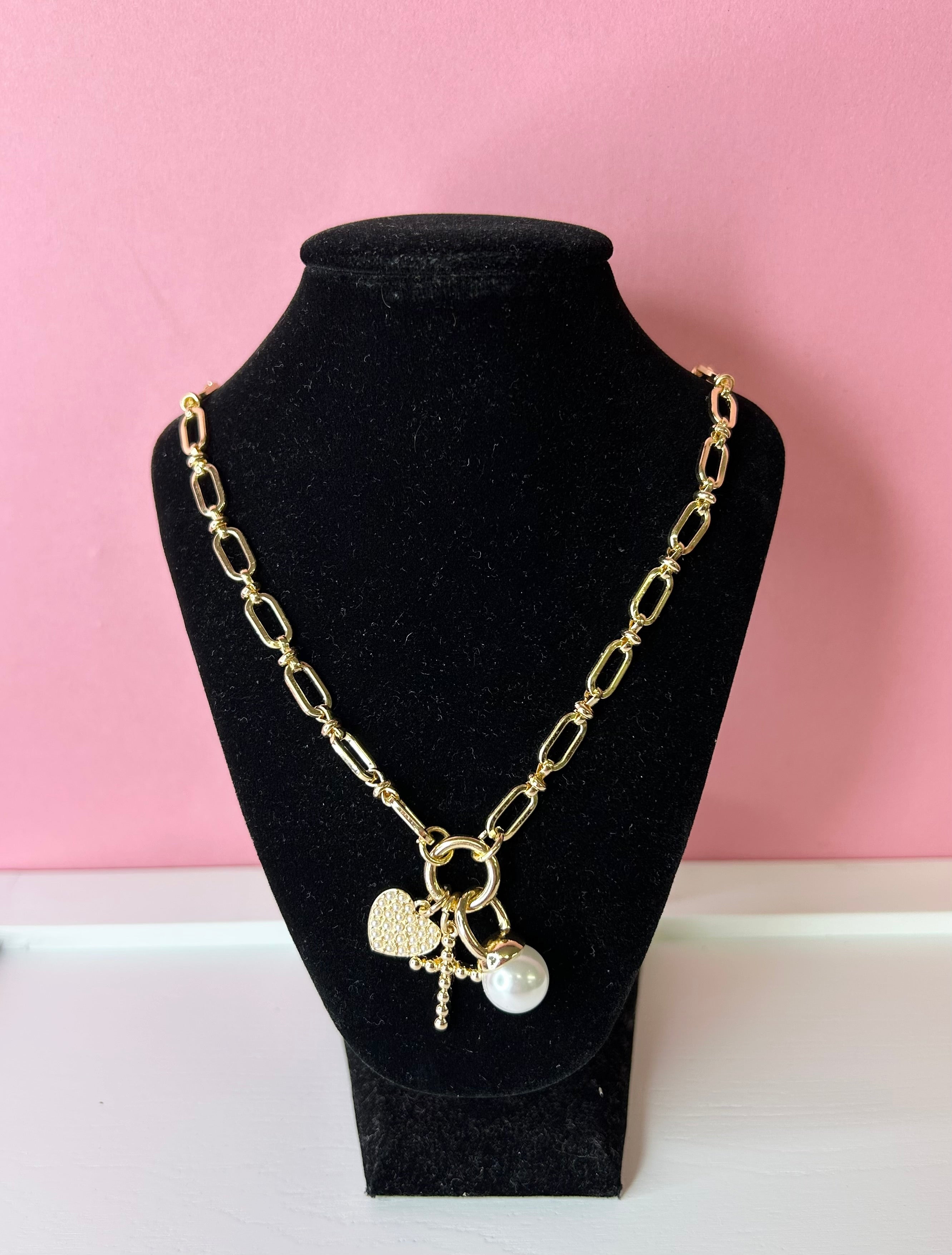 Exude grace and style with the Poppy Beaded Cross & Pearl Charm Necklace. Delicate gold beads, a cross charm, and an ivory pearl drop create a sophisticated and elegant look. Perfect for any occasion, this necklace is adjustable and features shiny gold plating. Elevate your jewelry collection with this stunning piece!