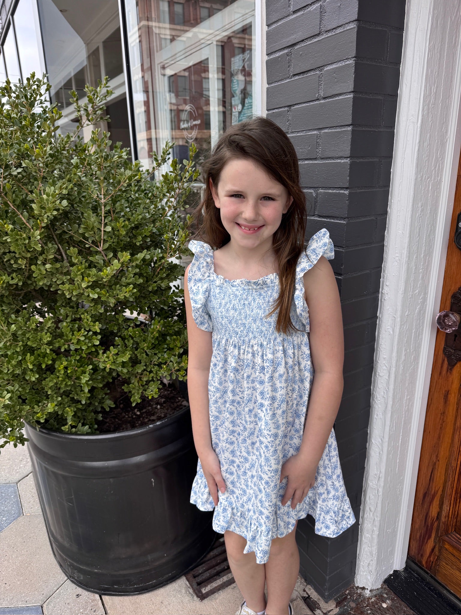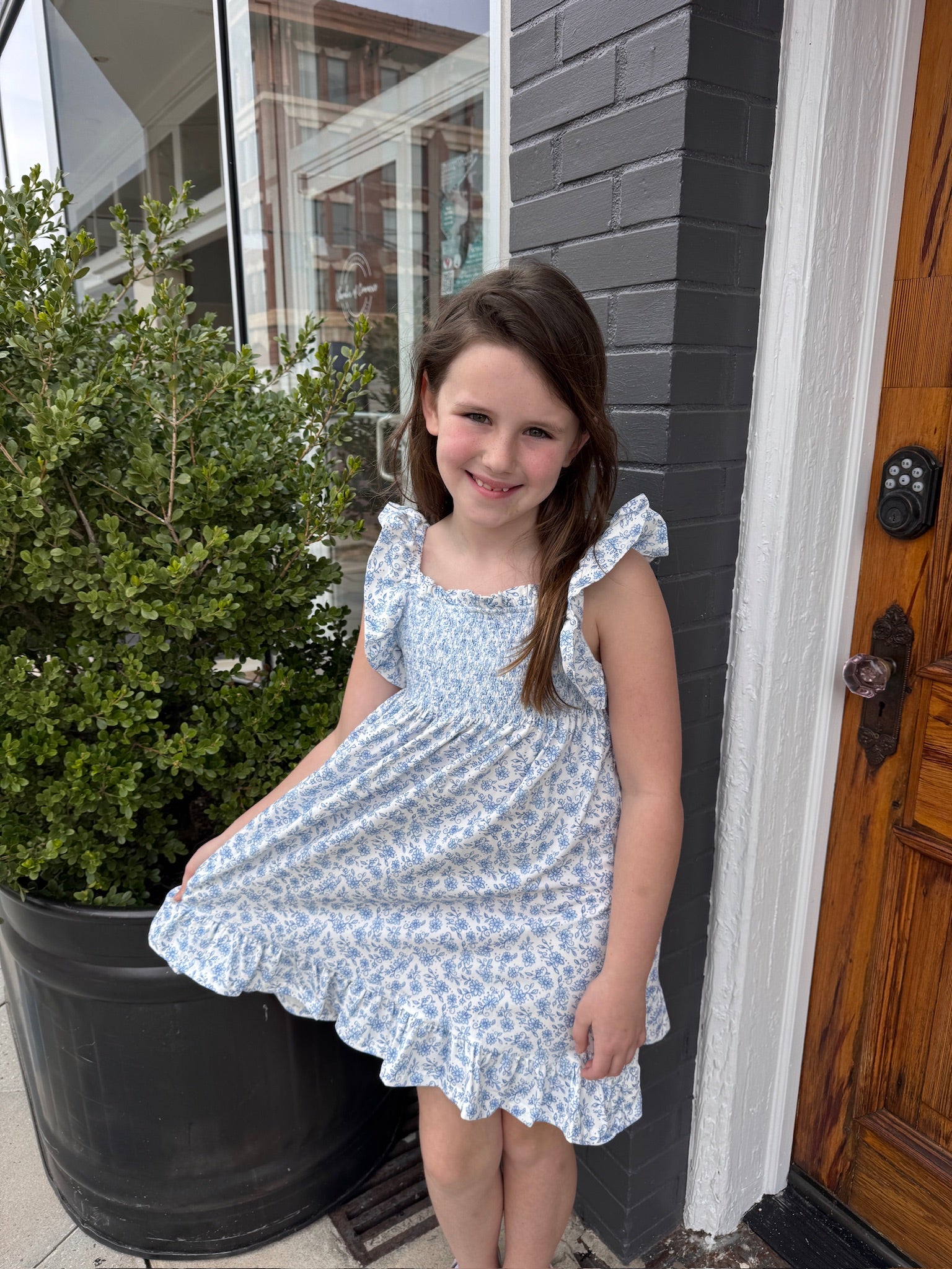 Twirl into spring in this charming blue floral smocked dress! Delicate ruffles and sweet smocking details make it picture-perfect for Easter celebrations and family photos. A playful pick that's as fun to wear as it is to look at.