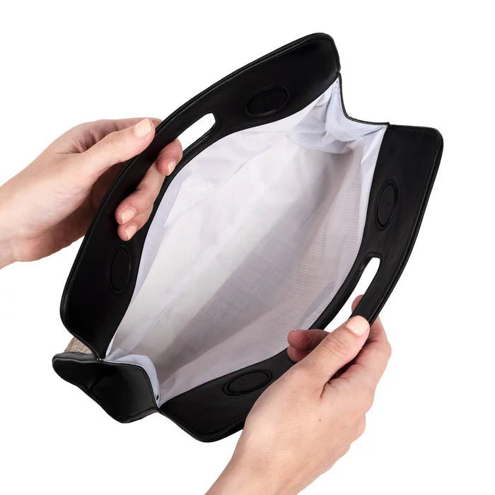 WARM WEATHER, COOL CLUTCH. Meet your new summer sidekick. This small simple clutch is big on style with room for your essentials: phone, wallet, keys, lip balm, you name it. The strong magnetic closure (interior magnets on either side of the cut-out handle) keeps your items secure while offering easy access - just pull open and grab what you need.
