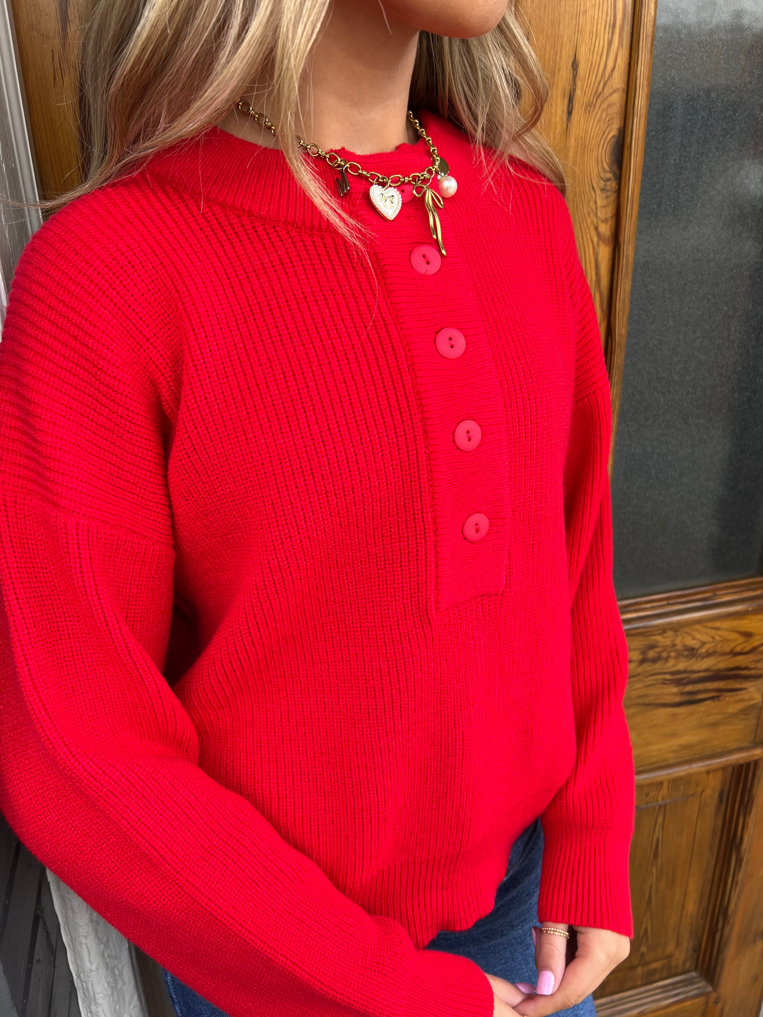 Wrap yourself in effortless comfort with The Vera Red Sweater, a drop-shoulder design that combines style with coziness. Crafted from incredibly soft fabric, this sweater features a charming front button detail that adds character to your everyday look. Whether you're layering through crisp mornings or settling in for cool evenings, this versatile piece becomes your go-to choice. The relaxed fit and luxurious feel make it impossible to resist reaching for again and again. Elevate your casual wardrobe with a sweater that feels as good as it looks.