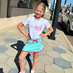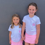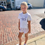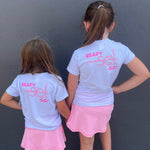 She will be SET in our Coconut Knit top with Power Pink or Petal Purple logo. Pair it back with our shorts or skort for the perfect summer time look.