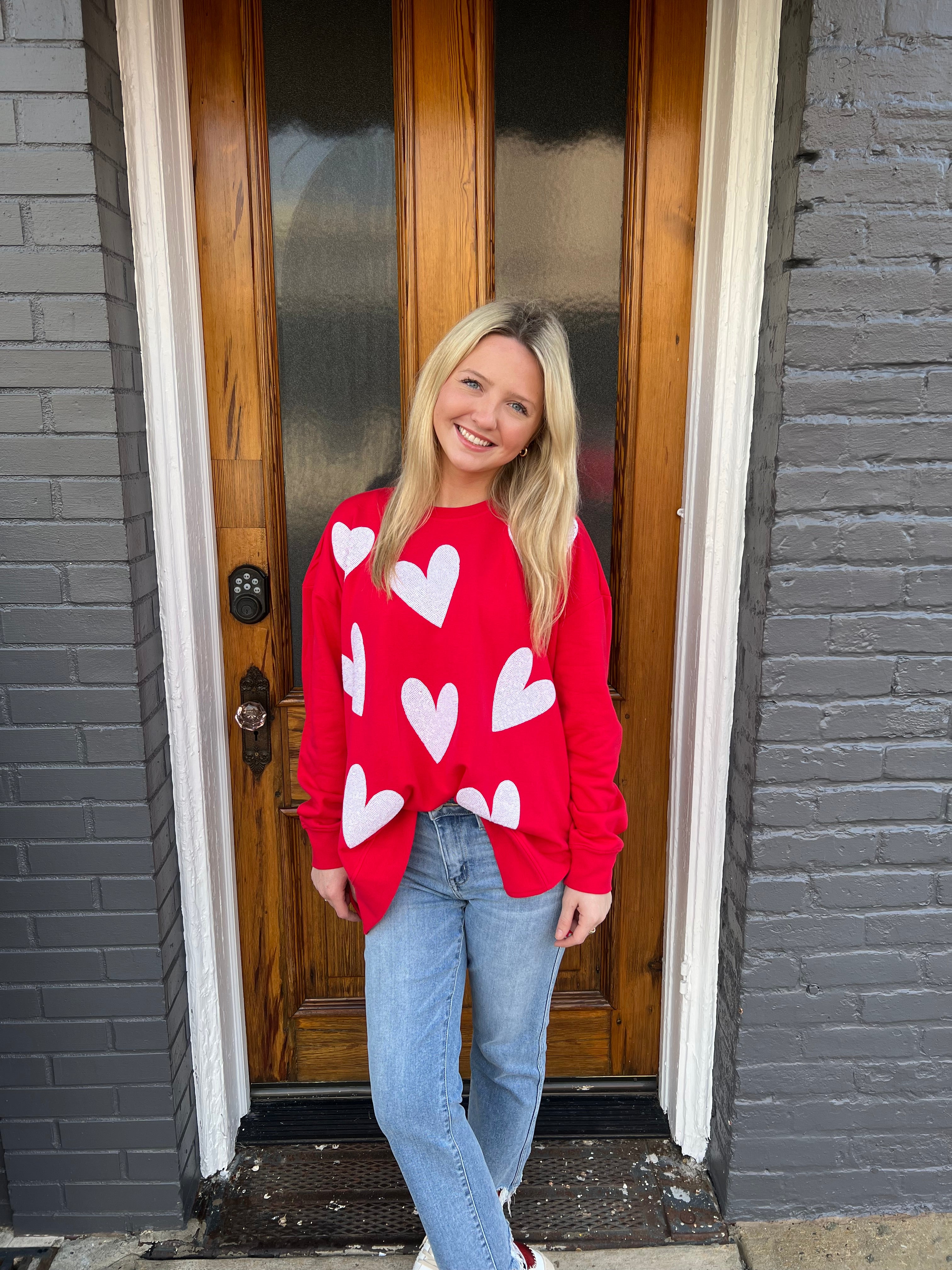 VALENTINES SPARKLE SWEATSHIRT - RED